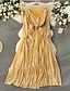 女性用 ミディドレス シースドレス シフォン シャーリングドレス ファッション 近代の アウトドア 祝日 お出かけ レギュラー 平織り ノースリーブ クルーネック ブラック ピンク ブラウン 春 秋
