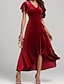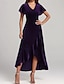 女性用 ミディドレス ベルベットドレス 二次会ドレス / カクテルドレス エレガント ファッション 近代の アウトドア パーティー パーティーイブニングウェア レギュラー 平織り 半袖 Vネック ブラック ルビーレッド パープル 春 秋
