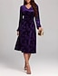女性用 ミディドレス ベルベットドレス 二次会ドレス / カクテルドレス エレガント ファッション 近代の アウトドア パーティー パーティーイブニングウェア レギュラー フラワー 平織り 長袖 Vネック ルビーレッド パープル グリーン 春 秋