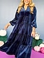 女性用 ミディドレス ベルベットドレス 二次会ドレス / カクテルドレス エレガント ヴィンテージ ファッション アウトドア パーティー パーティーイブニングウェア レギュラー 平織り 長袖 スクエアネック ルビーレッド ブルー ダークグリーン パープル 春 秋