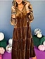 女性用 ミディドレス スパンコールドレス エレガント ファッション 近代の アウトドア パーティー 日常 レギュラー 平織り 長袖 クルーネック ゴールド 春 秋