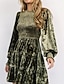 女性用 ミディドレス スイングドレス セミフォーマルドレス A ラインドレス プリントドレス ファッション ストリートファッション 近代の フォーマル アウトドア バケーション レギュラー フラワー 七分袖 Vネック ピンク 秋 冬