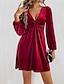 女性用 ミニドレス 二次会ドレス / カクテルドレス サテンドレス スリップドレス エレガント ファッション 近代の アウトドア パーティー パーティーイブニングウェア スリム 平織り 長袖 Vネック ブラック ホワイト ダスティブルー ブラウン 春 秋