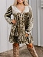 ウィメンズミニドレス プチドレス サンドレス Aラインドレス サマードレス ファッション ストリートウェア モダン アウトドア バケーション デイリー ルーズフィット フローラル ショートスリーブ スウィートハート シルバー ブルー ダークグリーン フューシャ