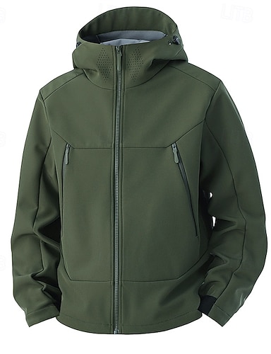 男性用 フリースレインジャケット 冬物ジャケット ハイキング ジャケット ウィンドブレーカージャケット アウトドア スポーツ・アウトドア 防水 ウィンドブレーカー ポケット 取り外し可能なフード 秋 冬 純色 活発的 スポーティー フード付き ショート ブラック ネイビーブルー カーキ色 ダック アーミーグリーン ジャケット