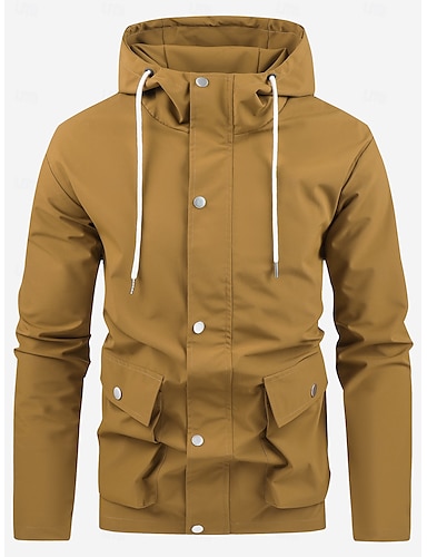 男性用 スポーツコート ハイキング ジャケット タクティカルジャケット ウィンドブレーカージャケット アウトドア スポーツ・アウトドア 防水 ウィンドブレーカー ジッパー ポケット 秋 冬 純色 活発的 軍隊 フード付き ショート ブラック ホワイト イエロー ダークレッド ネイビーブルー ジャケット