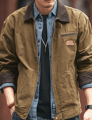 男性用 カーゴジャケット カジュアルジャケット バケーション 日常 高通気性 ポケット 秋 冬 平織り ファッション クラシック ラペル レギュラー ブラック ブラウン カーキ色 ジャケット