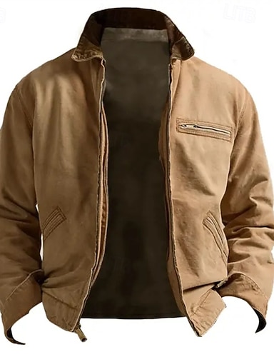 男性用 ジャケット カジュアルジャケット アウトドア バケーション ウォーム ジッパー ポケット 秋 冬 平織り ファッション ストリートファッション スタンドカラー レギュラー ブラック ブラウン アーミーグリーン ベージュ ジャケット