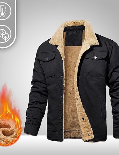 男性用 冬物ジャケット シェルパジャケット バケーション 日常 保温 ポケット フリース 冬 平織り ファッション ストリートファッション ラペル レギュラー ブラック イエロー ワイン コーヒー ジャケット