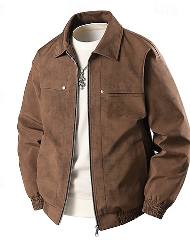 男性用 軽量ジャケット ボンバージャケット ボンバーレザージャケット 日常 バケーション ソフト ポケット 春 & 秋 平織り ファッション クラシック スタンド レギュラー アプリコット ブラック レッド ネイビーブルー ブラウン ジャケット
