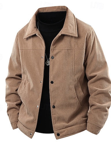 男性用 軽量ジャケット コーデュロイジャケット カーゴジャケット カジュアルジャケット バケーション 日常 保温 ポケット 秋 冬 平織り ファッション クラシック ラペル レギュラー ブラック ブラウン ライトグレー アーミーグリーン アプリコット ジャケット