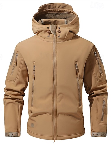 男性用 アウトドアジャケット ソフトシェルジャケット ハイキング ジャケット バケーション 日常 防風 防水機能 ポケット 秋 冬 カモフラージュ ファッション クラシック フード付き レギュラー ダークグレー ブラック ライトグリーン ブルー ダークグリーン ジャケット