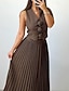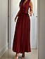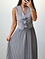 女性用 ミディドレス カジュアルドレス ドレスセット サテンドレス エレガント ファッション 近代の アウトドア 日常 お出かけ レギュラー 平織り ノースリーブ Vネック ブラック ピンク ワイン ブルー 春 秋
