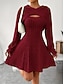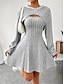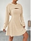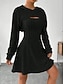女性用 ドレスセット A ラインドレス エレガント 平織り フリル ミニドレス 長袖 フード付き アウトドア バケーション ブラック ワイン アプリコット 春 秋 レギュラー