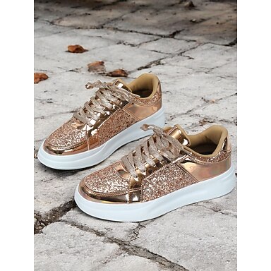 女性用 スニーカー コンフォートシューズ アウトドア 日常 トラベル 刺繍 ウエッジ ラウンドトウ ファッション カジュアル コンフォートシューズ グリッター メタリックPUレザー 靴紐 ブラック ゴールド