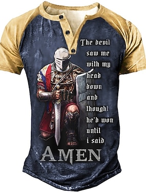 男性用 Tシャツ ヘンリーシャツ グラフィックTシャツ スローガンTシャツ テンプルクロス Soldier ヘンリー ネイビーブルー ブルー グリーン グレー 3Dプリント プラスサイズ アウトドア 日常 半袖 パッチワーク ボタンダウン 衣類 デザイナー スタイリッシュ ヴィンテージ ベーシック