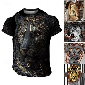 男性用 グラフィック 動物 ライオン Tシャツ 半袖 Tシャツ 3Dプリント クルーネック シャツ レトリ/ヴィンテージ カジュアル サブカルチャー スポーツ・アウトドア 祝日 お出かけ ブルー レッド パープル 春夏 衣類 S M L XL 2XL 3XL