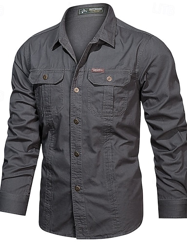 男性用 シャツ ワークウェアシャツ ワークシャツ ボタンアップシャツ カーゴシャツ ブラック ホワイト ルビーレッド カーキ色 アーミーグリーン 長袖 平織り ラペル バケーション 祝日 フロントポケット 衣類 コットン100% ファッション カジュアル 快適