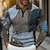 男性用 縞柄 ラグビーポロ ケーブルニットポロ 長袖 ポロシャツ 襟付きシャツ カジュアル アウトドア アスレイジャー 3Dプリント 春 秋 グレー