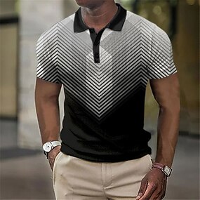 男性用 ストライプ ジップポロシャツ ゴルフシャツ 半袖 ポロシャツ 襟付きシャツ ビジネスカジュアル 作業服 フォーマルウェア フェスティバルウェア 3Dプリント クォータージップポロ ブラック ホワイト ブルー