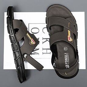 バックルデザインのメンズブラウンフェイクレザーアウトドアサンダル - アクティブな夏の冒険にぴったりのスタイリッシュで通気性のあるサンダル