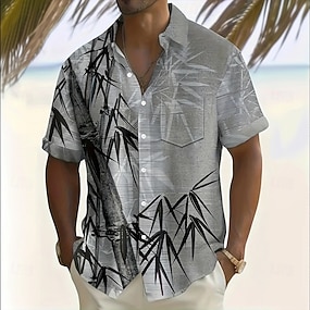 男性用 ココナッツの木 熱帯植物 アロハシャツ ボタンアップシャツ 半袖 ハワイアン 祝日 ビーチウェア 夏 春 折襟 3Dプリント 襟付きシャツ フロントポケット1つ イエロー ブルー グレー