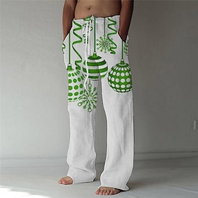 クリスマス 男性用 提灯 パンツ 巾着ゴムウエスト カジュアル パーティーイブニングウェア クリスマスパーティー ビーチウェア ストレートレッグパンツ 3Dプリント ホワイト ブルー グリーン