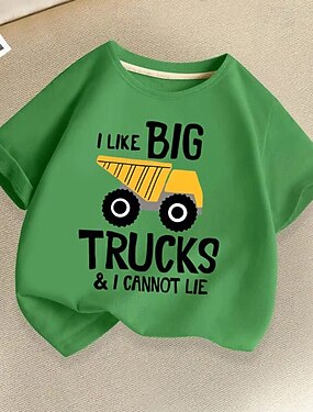 コットン100% 子供 男の子 ブラック ホワイト グリーン カートゥン 車両 Tシャツ トップス クルーネック 半袖 バケーション カジュアル デイリーウェア ファッション スポーツ プリント 夏