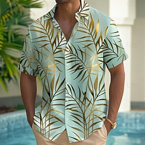 男性用 シュロの葉 熱帯植物 シャツ アロハシャツ ボタンアップシャツ 半袖 ハワイアン リゾート バケーション 祝日 ビーチウェア 夏 春 折襟 3Dプリント 襟付きシャツ ピンク ブルー グリーン