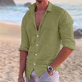 男性用 シャツ リネンシャツ サマーシャツ ビーチウェア ボタンアップシャツ 純色 アウトドア バケーション ブラック ホワイト ピンク ブルー 長袖 折襟 春夏 衣類 ボタンダウン