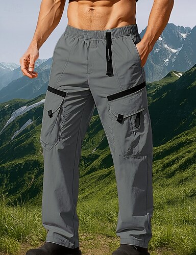 男性用 ハイキング パンツ 夏 アウトドア 肌にやさしい 履き心地よい マルチポケット 速乾性 パンツ ボトムズ ドローストリング 弾性ウエストバンド ジッパーポケット ブラック アーミーグリーン スパンデックス エラステイン 狩猟 釣り キャンプ / ハイキング / ケイビング L XL XXL XXXL 4XL