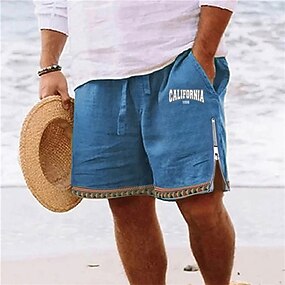 男性用 レタード ショーツ サマーショーツ ビーチショーツ ミディアムウエスト ハワイアン カジュアル 日常 祝日 お出かけ ドローストリング ジッパー 弾性ウエスト デザイナー 衣類