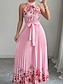 ウィメンズミディドレスラップドレスAラインドレスプリーツドレスホルタードレスバケーションバケーションカジュアルデイリーレギュラーフィットグラフィック袖なしホルターネック黒ピンクワイン緑夏