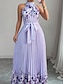 女性用 マキシドレス A ラインドレス ホルタードレス 旅行度假风 カジュアル アウトドア お出かけ レギュラー フラワー グラフィック ノースリーブ ホルターネック ブルー ピンク パープル グリーン 夏 春
