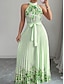 女性用カジュアルドレス スイングドレス ポルカドットドレス ロングドレス マキシドレス シフォンドレス プリーツ グリーン ブラック ブルー ノースリーブ プリント 春 夏 ホルターネック バケーション ビーチ デイリー 2023 s m l xl