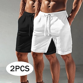 男性用 ショーツ リネンショーツ サマーショーツ ビーチショーツ 弾性ウエスト ドローストリング ボタン 平織り 履き心地よい 高通気性 膝丈 アウトドア 日常 ビーチ 旅行度假风 ファッション ブラック ホワイト 伸縮性なし