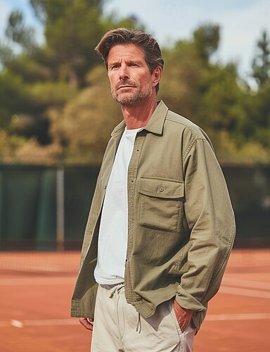 男性用 シャツ サマーシャツ ボタンアップシャツ カジュアルシャツ ワークシャツ グリーン 長袖 平織り ラペル 祝日 バケーション ポケット 衣類 ファッション カジュアル 快適