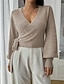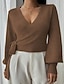 女性用 ニット プルオーバー エレガント ストリートファッション 純色 Vネック ニット 長袖 レギュラートップス ニット 日常 祝日 お出かけ ブルー グリーン 秋 冬