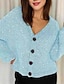 女性用 ニット カーディガン セーターコーデ ストリートファッション カジュアル 純色 Vネック ボタン ニット 長袖 レギュラートップス ニット アウトドア 祝日 お出かけ ブラック ブルー 秋 冬