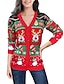 女性用 ニット カーディガン カジュアル ソフト クリスマスのトナカイ リブ Vネック ニット 長袖 レギュラートップス ニット クリスマス アウトドア 日常 ブラック ルビーレッド 秋 冬