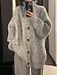 女性用 ニット カーディガン ストリートファッション カジュアル 純色 スタンド ポケット ボタン ニット 長袖 レギュラートップス ニット 日常 祝日 お出かけ ライトグレー ダックグレー 秋 冬