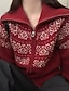 女性用 ニット カーディガン ストリートファッション カジュアル フラワー Vネック ニット プリント 長袖 レギュラートップス ニット クリスマス 日常 祝日 ルビーレッド 秋 冬