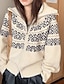 女性用 ニット カーディガン ヴィンテージ ストリートファッション カジュアル グラフィック シャツカラー ジッパー ニット プリント 長袖 レギュラートップス ニット 日常 祝日 お出かけ ルビーレッド ベージュ 秋 冬