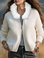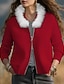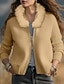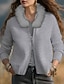 女性用 ニット カーディガン ファッション ストリートファッション カジュアル 純色 クルーネック ニット フェイクファートリム 長袖 レギュラートップス ニット 日常 祝日 お出かけ ブラック ルビーレッド 秋 冬