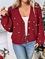 女性用 ニット カーディガン エレガント ファッション かわいいスタイル 純色 波点 Vネック ビーズ ボタン ニット 長袖 レギュラートップス ニット クリスマス アウトドア 日常 ルビーレッド 秋 冬