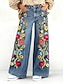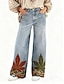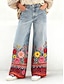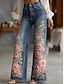 女性用 ワイドレッグ チノパン 旅行度假风 ヴィンテージ エスニック 全長 ハイウエスト フラワー グラフィック ポケット プリント 快適 ソフト マイクロエラスティック アウトドア バケーション ストリート ブルー 春 秋 冬 ルーズフィット
