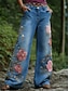 女性用 グラフィック柄 ワイドレッグ チノパン 旅行度假风 ヴィンテージ ファッション 全長 ハイウエスト フラワー ポケット プリント 快適 ソフト マイクロエラスティック アウトドア バケーション ストリート ブルー 春 秋 冬 ルーズフィット