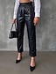 女性用 チノパン 革のズボン ハーレムパンツ 旅行度假风 ヴィンテージ ストリートファッション 全長 ミディアムウエスト 平織り パッチワーク 弾性ウエストバンド 快適 マイクロエラスティック アウトドア バケーション ストリート ブラック ブラウン 秋 冬 レギュラー