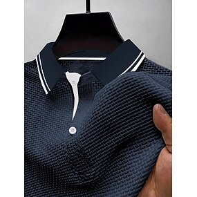 男性用 ワッフルポロシャツ ゴルフシャツ ワーク カジュアル ラペル 半袖 ベーシック 近代の テクスチャード加工 ボタン ジャカード 夏 レギュラー ブラック ホワイト ブラック ダックブルー ネイビーブルー ワッフルポロシャツ