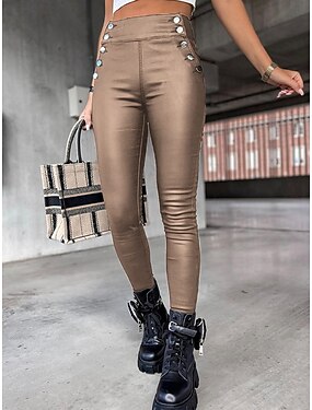 女性用 革のズボン レギンス ファッション ストリートファッション 全長 ハイウエスト 平織り 快適 ソフト マイクロエラスティック アウトドア ストリート ワイン ブラック カーキ色 夏 春 タイト